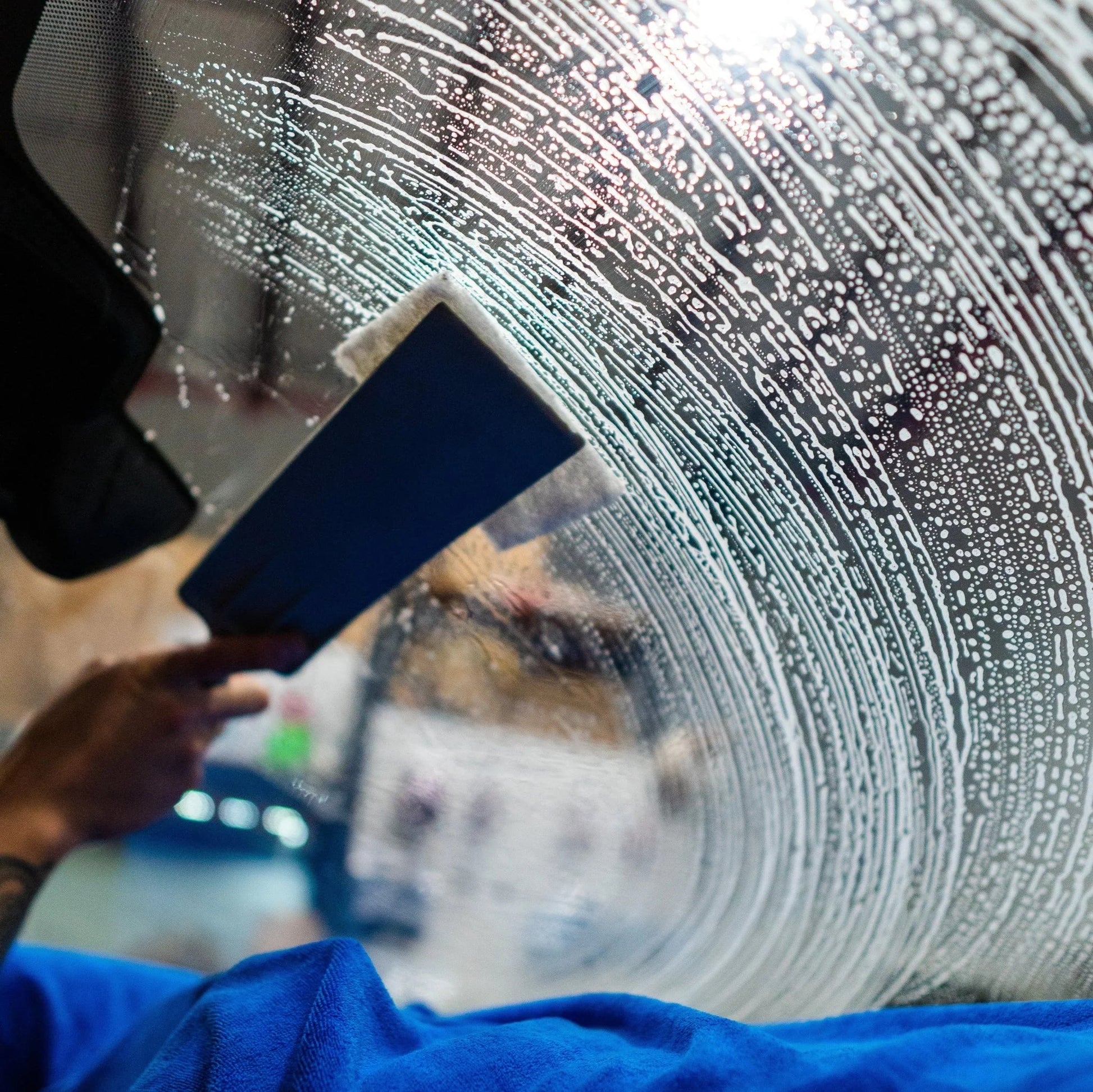 It allows you to easily scrub behind the rear brake light and lower area where you cannot fit your hands with a scrub pad. The dimensions are 3" wide by 15" long. Add it to your workflow for cleaner installs, less rework, and more consistent output.